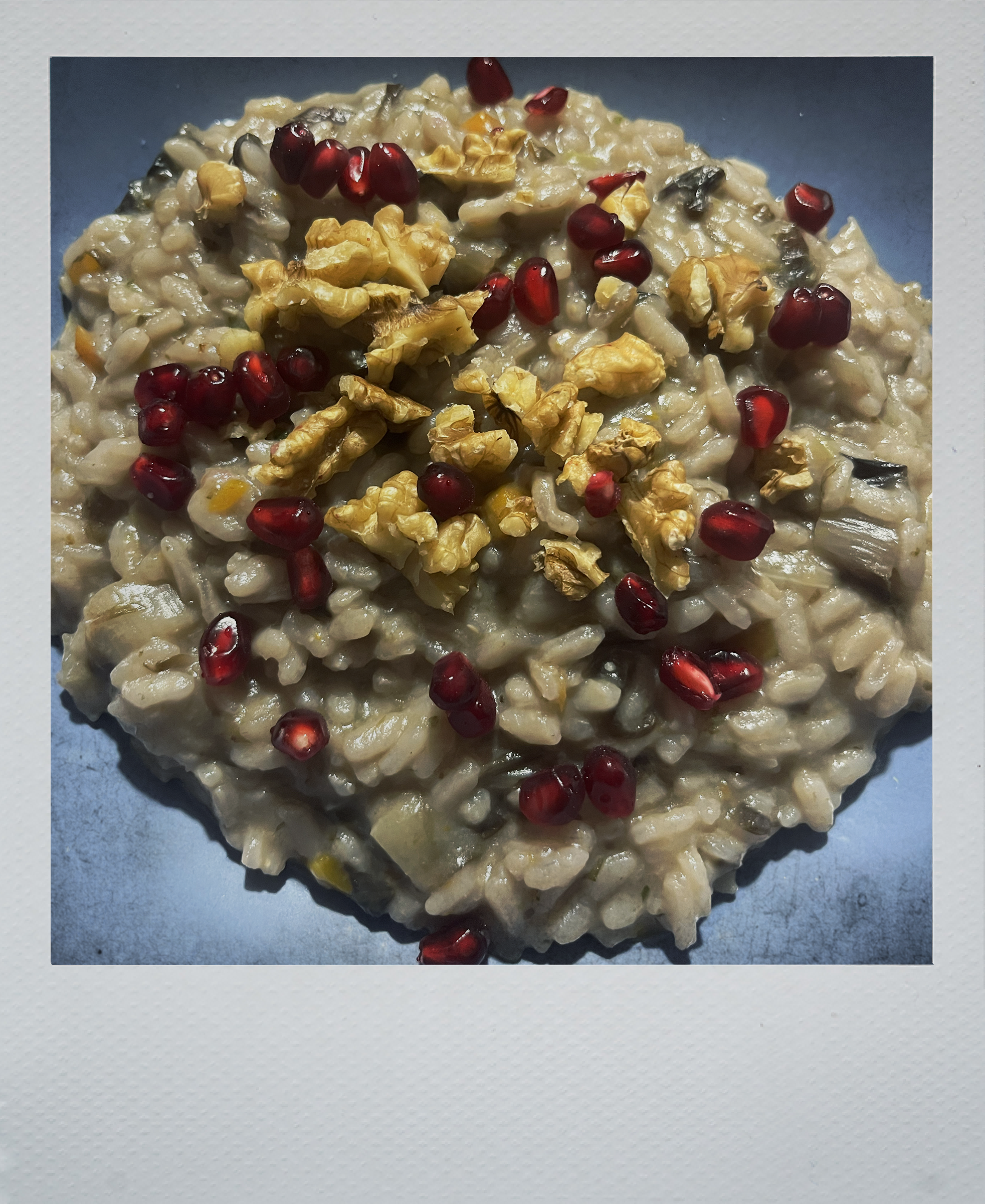 Come il risotto al radicchio con noci e melograno.